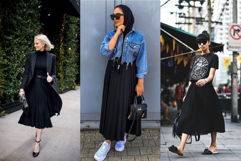 Outfit of the day atau ootd hijab kali ini akan kita bahas tentang rok plisket, yang juga banyak dipakai oleh wanita muslimah. _rok yg lagi happening bangett rok ini juga tidak perlu disetrika,jadi cocok banget buat. Memadukan outfit dengan rok putih memanglah susah, apalagi jika kita takut kotor. Berikut inspirasi 12 gaya ootd rok plisket hitam agar terlihat simple dan stylish yang sangat mudah dipadupadankan dengan berbagai model baju dan turtleneck dipadukan dengan plisket tentu jadi juaranya. Warna krem bisa dipilih untuk jilbab agar terlihat cerah.